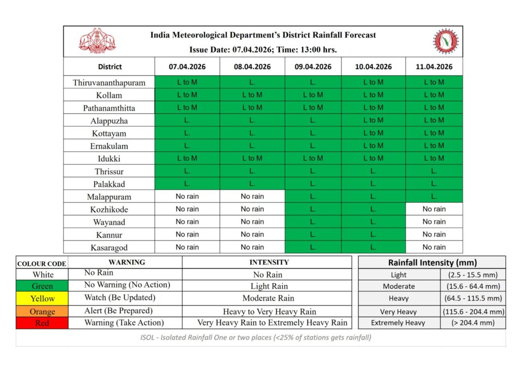 പുറപ്പെടുവിച്ച സമയം: 01.00 PM; 07/04/2026