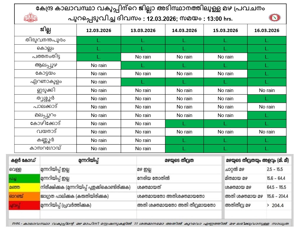 പുറപ്പെടുവിച്ച സമയം: 01.00 PM; 12/03/2026