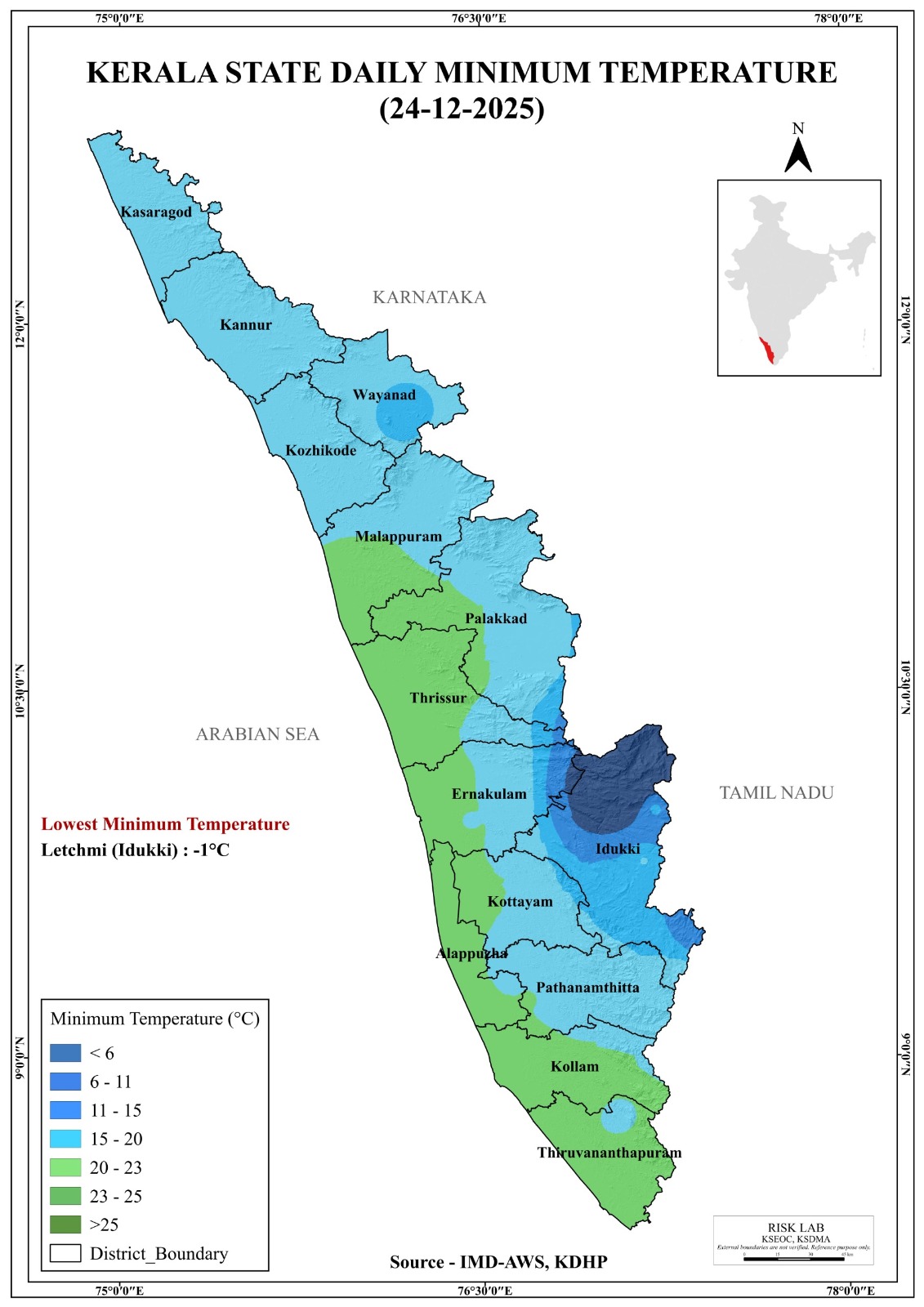 KERALA STATE- DAILY MAXIMUM & MINIMUM TEMPERATURE Maximum Temperature Minimum Temperature- 24/12/2025