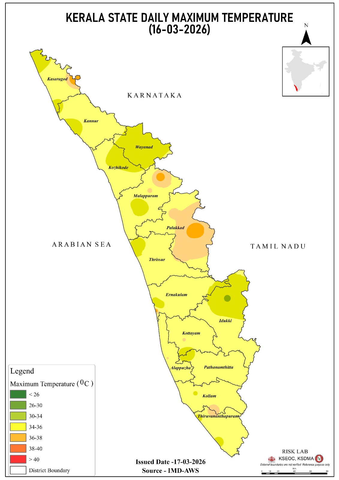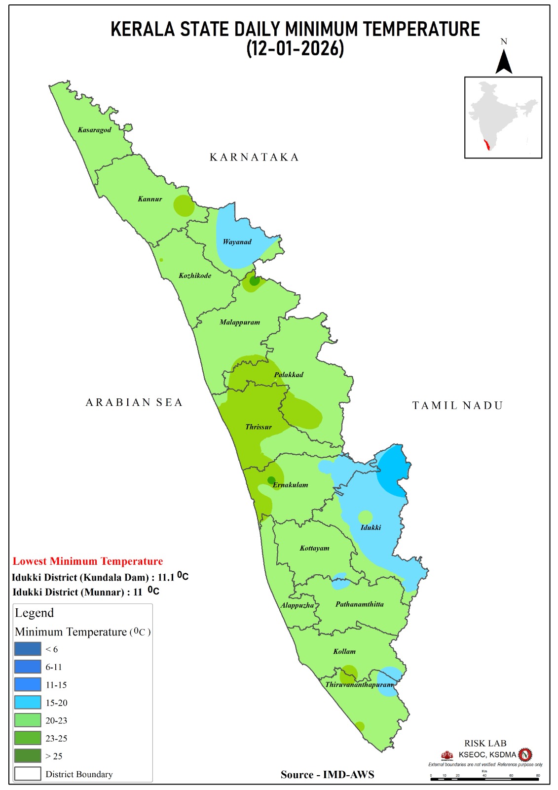 KERALA STATE- DAILY MAXIMUM & MINIMUM TEMPERATURE Maximum Temperature Minimum Temperature- 12/01/2026